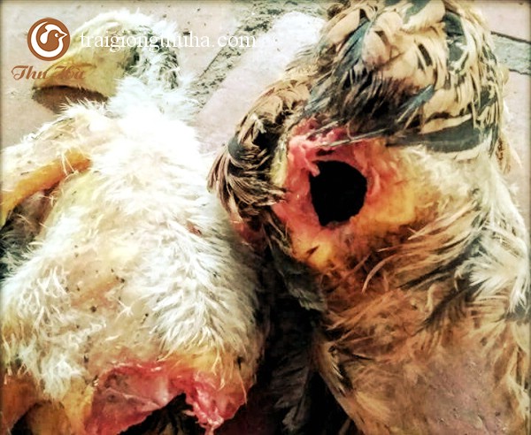 • Còn khi bị nặng, gà mổ cắn, đuổi đánh nhau đến chảy máu. chúng mổ rách cánh, mổ thủng phao câu của nhau, Gây chết gà.